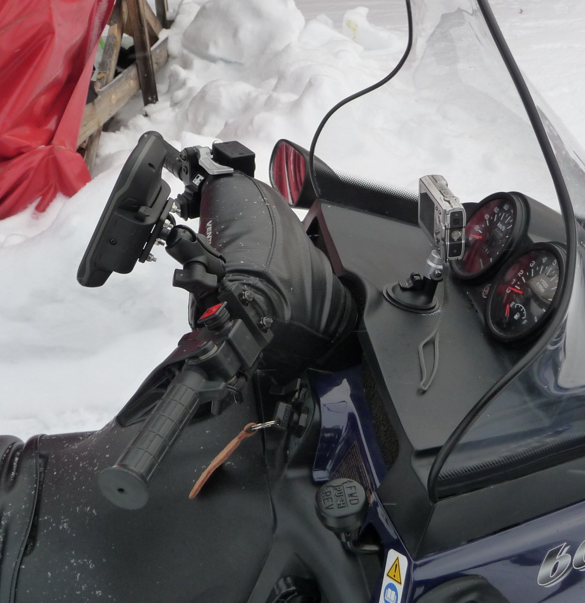 Nu har jag provat min Montana på riktigt under 29 mils körning. Skoterledskartan fungerar ypperligt. Uppskattar att man kan vrida Montanan hur som helst och skärmen följer med men så kanske alla bärbara navigatorer fungerar. Även jag har en vridande markering på kartan vid stillastående som känns lite tråkigt.Innan Montanan har hittat sin exakta position ritar den upp en massa streck på spårhanteraren så aktuellt spår bör man radera innan man kör iväg. Montering med mc fäste direkt till batteriet via medföljande kablar.