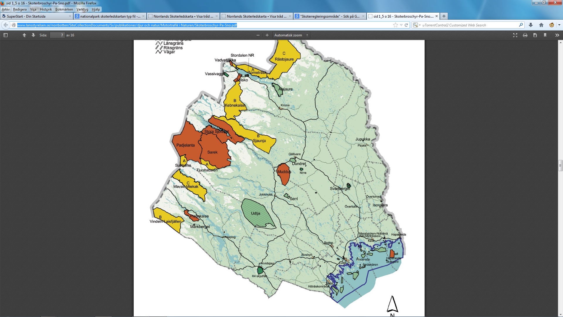Ser bara Abisko nationalparksområdet och ner mot Kiruna en massa yta med förbudsområden.